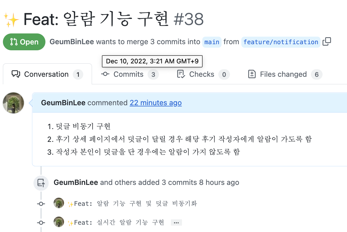 - 알람은 비동기인데 덧글 지 혼자 동기로 돌아가서 아귀가 안 맞길래 덧글도 비동기로 수정했다.